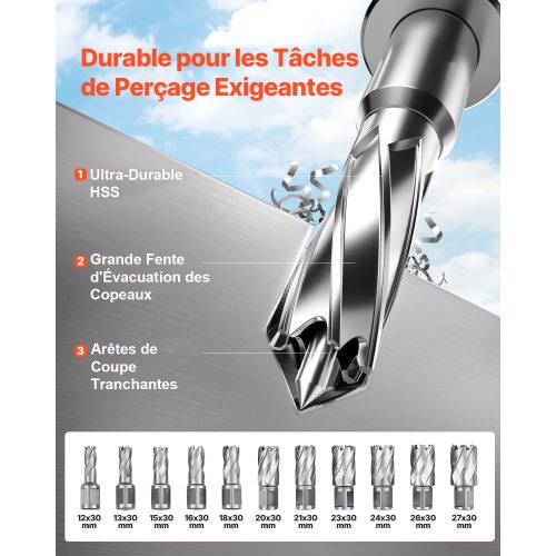 VEVOR Kit di Seghe a Tazza Strumenti in Valigetta 11 Pezzi, Set di Seghe a Tazza Bimetallica M42 con Valigetta Portatile Dimensioni per Uso Generale da 3/4" a 3", Set di Frese a Tazza per Legno Ferro