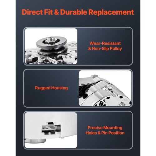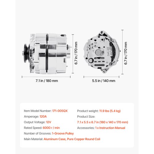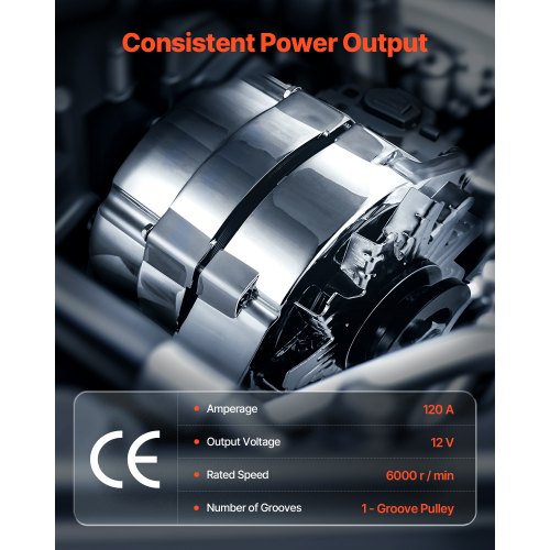 VEVOR Alternatore per Auto 7127-SE105C, per Street Rod Autoeccitante a 1 Filo GM 305 350 BBC SBC, Apollo 4.1L 1973-1974, Century 2.5L 1982, Alternatore di Ricambio 1-2400-11DR-2, 7127-SECN-100A