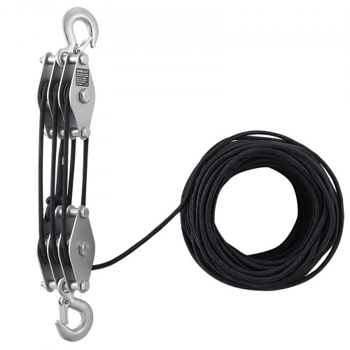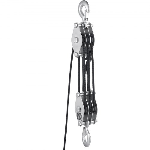 VEVOR Paranco a Puleggia con Fune 30,48 m, Resistenza alla Rottura 2 T, Sistema di Puleggia Potenza di Sollevamento 5:1 con 2 Anelli Morbidi, Struttura Portante con Ruote Metallo, Blocco e Paranco