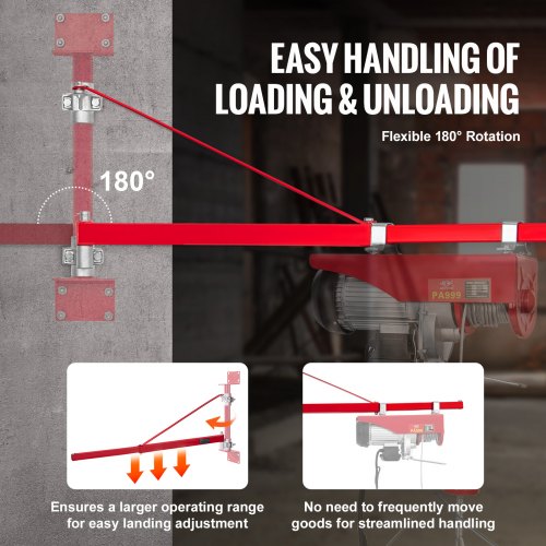 VEVOR Braccio Supporto per Paranco Elettrico, Capacità Carico 600 kg, Braccio di Supporto per Paranco Girevole con Asta, Telaio di Sollevamento in Acciaio a 180° per Officina, Garage