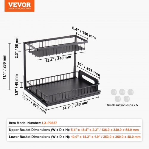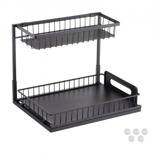 VEVOR Organizzatore Estensibile a 2 Ripiani, Organizzatore Scorrevole Sotto Lavello, Portaoggetti con Cassetto Estraibile, Cestello in Filo Metallico, Ripiano per Cucina Bagno, Nero 270x360x280 mm