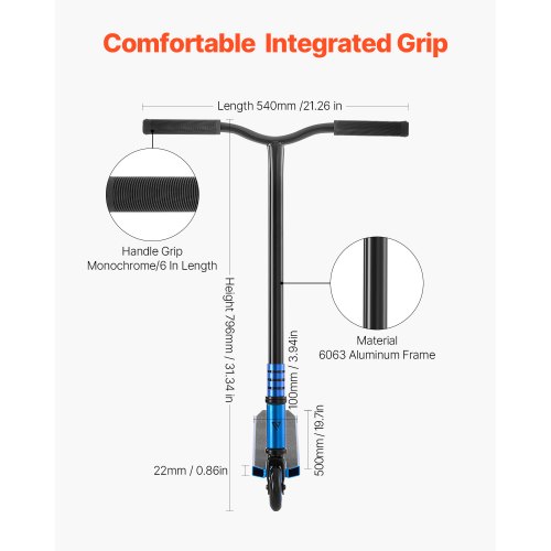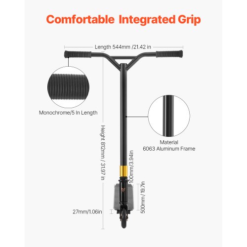 VEVOR Monopattino Acrobatico 678 x 544 x 812 mm Monopattino Completo per Acrobazie per Bambini, Adolescenti, Adulti, Dotata di Ruote PU Silenziose 100 mm Ponte in Alluminio Leggero, Cuscinetti ABEC-9