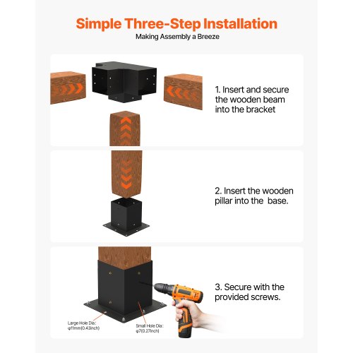 VEVOR Kit Staffe per Pergola, Adatto per Travi in Legno 92 x 92 mm in Dimensioni Reali, Staffe per Gazebo a 3 Vie, 4 Pezzi e 4 Vie, 2 Pezzi con 6 Basi per Pali, per Pergole Esterne, Gazebo, Capannoni