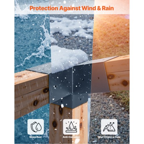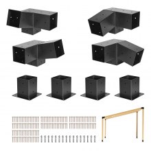VEVOR Kit per Pergola in acciaio al carbonio, 8 Pezzi Staffe Inclinate a 3 Vie ca.101 x 101 mm, Adatto per Travi da ca.1067 x 1067 mm con Accessori per Montaggio a Parete, Pergole Esterne, Gazebo