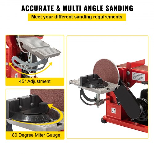VEVOR Levigatrice a Nastro da Banco 375W, Levigatrice a Disco a Nastro, Velocità 1420 giri / min, Levigatura Orizzontale e Verticale Piattaforma del Nastro 10x91,5 cm, per Fabbriche di Materiali da Costruzione