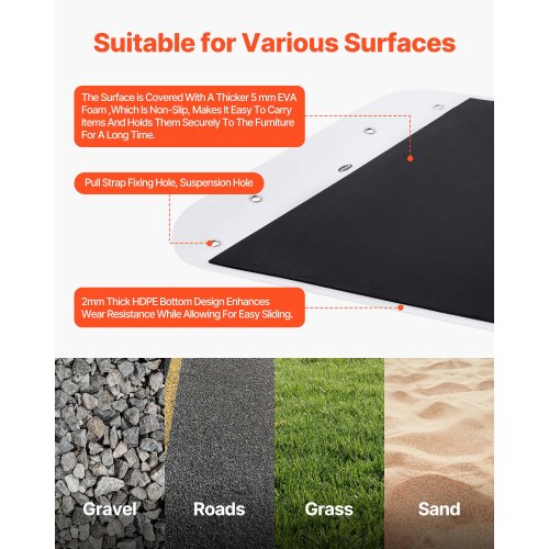 VEVOR Slitta per Trascinamento per Caccia, 2800 x 1015 mm Slitta per Trasporto per Cervi, Carico 725,75 kg con Corde e Cavo di Trazione, Trasporto di Legna da Ardere e Pesca sul Ghiaccio, per ATV UTV