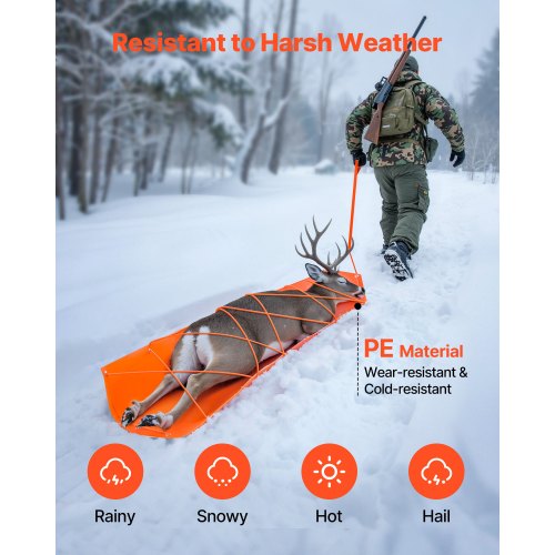VEVOR Slitta per Trascinamento per Caccia 1850 x 580 mm Slitta per Trasporto per Cervi da 249,97 kg con Corde e Maniglia, Trasporto di Selvaggina Ispessito per Legna da Ardere e Pesca sul Ghiaccio