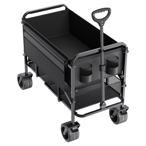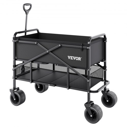 VEVOR Carrello Pieghevole a Due Piani, Carrello Multiuso per Carichi Pesanti da 300 L con Ruote Adatte a Tutti Terreni, Capacità di Peso di 204,12 kg per Campeggio, Sport, Shopping, Nero
