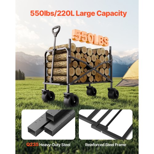 VEVOR Carro Pieghevole, Carrello da Spiaggia da 220 L con Ruote per Tutti i Terreni, Carrello da Carro Pieghevole per Carichi Pesanti Max 330 libbre con portabevande
