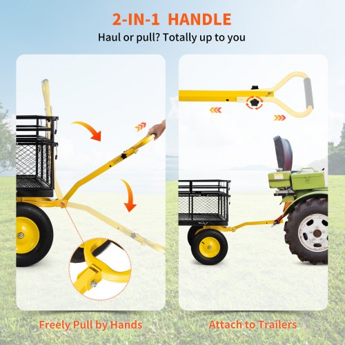 VEVOR Carrello Ribaltabile, Carrello Ribaltabile da Giardino con Telaio in Acciaio, Carro Ribaltabile con Maniglia Convertibile 2 in 1, Carriola Utilitaria Capacità di 800 libbre