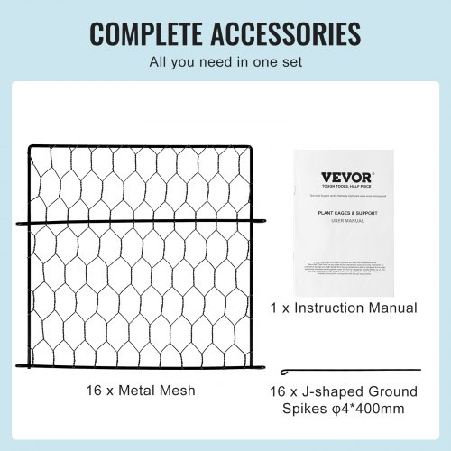 VEVOR Rete Protezioni per Piante, Kit Protezioni per Piante in Rete Metallica 34x34 cm 4 Pacchetti, Gabbie per Piante da Esterno, Fiori Verdure, da Giardino Cortile Orto, Kit Protezioni per Piante