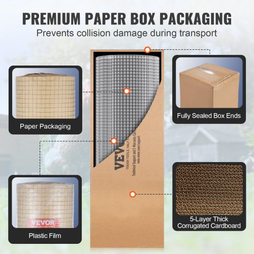 VEVOR Panno per Ferramenta 1220 mm x 30,48 m Calibro 23 Rotolo di Rete Metallica Zincata a Caldo, Recinzione Filo Metallico per Polli, Rete Metallica per Gabbie per Conigli, Giardino, Piccoli roditori
