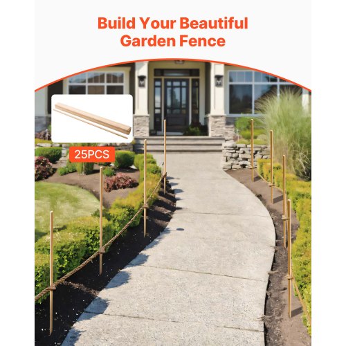 VEVOR Pali in Legno per Recinzione, Picchetti da Giardino in Legno di Abete con Punta Affilata, 17,53 x 12,7 x 1219,2 mm, Pali di Recinzione Segnaletici per Confini di Cortili, 25 Pezzi