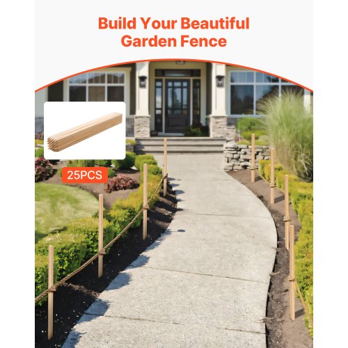 VEVOR Pali in Legno Duro per Recinzione, Picchetti da Giardino in Legno di Abete con Punta Affilata, 25 Pezzi 19,05 x 19,05 x 1219,2 mm, Pali di Recinzione Segnaletici per Confini di Cortili