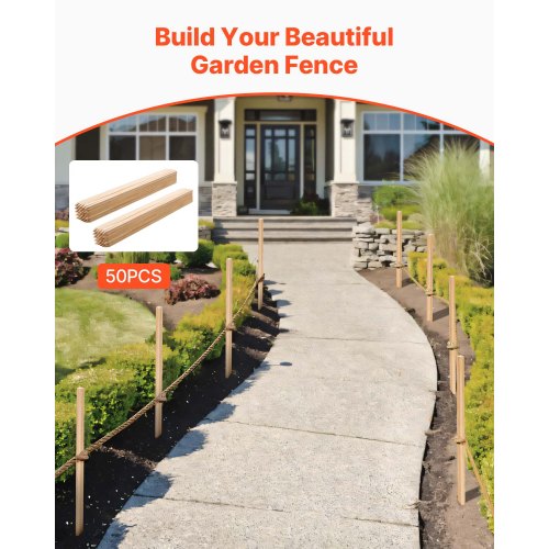 VEVOR Pali in Legno Duro per Recinzione, Picchetti da Giardino in Legno di Abete con Punta Affilata, 19,05 x 19,05 x 914.4 mm, Pali di Recinzione Segnaletici per Confini di Cortili, 50 Pezzi