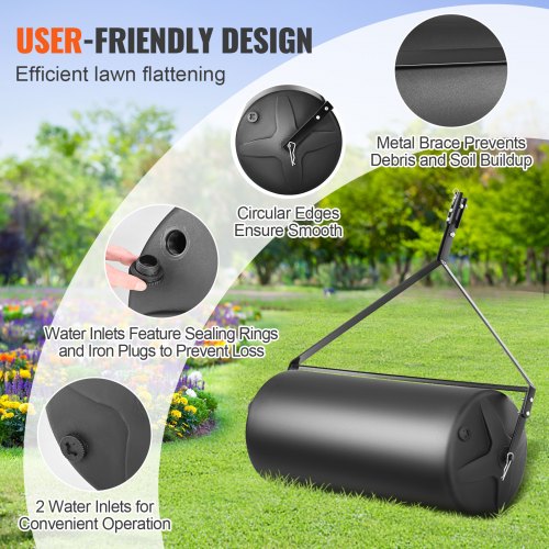 VEVOR Rullo da Giardino Capienza ca. 61 L Rullo da Giardino Riempito con Sabbia/Acqua Rullo Giardino in Acciaio, Rullo con Maniglia Ergonomica a Forma di U, Rullo da Livellare Prato da Giardino Parco