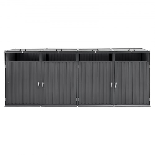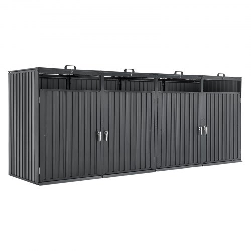 VEVOR Contenitore per Rifiuti da 4 x 240 L Contenitore per Bidoni della Spazzatura con Serratura, Armadio Orizzontale in Acciaio Zincato Impermeabile, per Uso in Giardino e Cortile