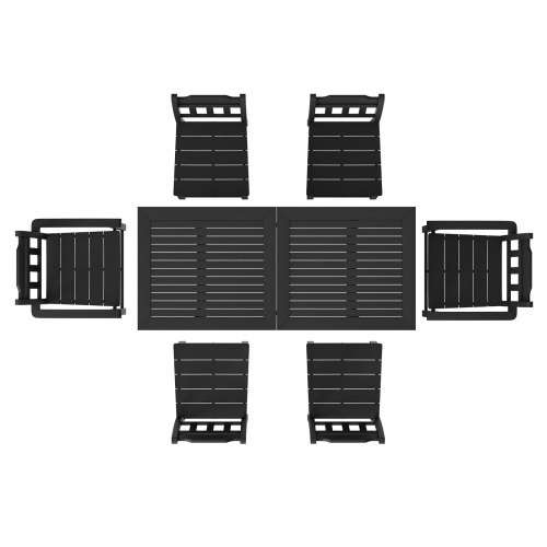 VEVOR Set mobili da giardino da 7 pezzi, set mobili da balcone, 1 tavolo + 6 sedie, 150 kg / 150 kg, gruppo sedute, resistente alle intemperie, resistente al sole, gruppo da pranzo, giardino, nero