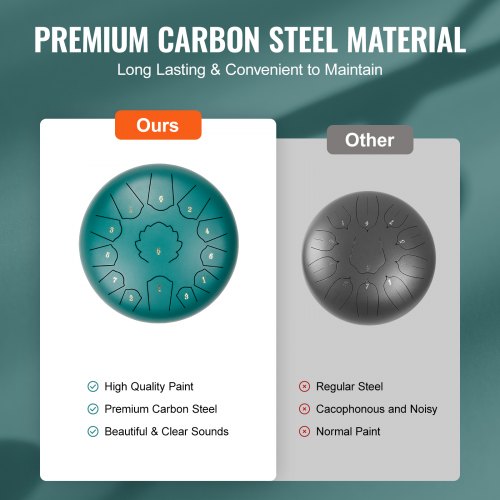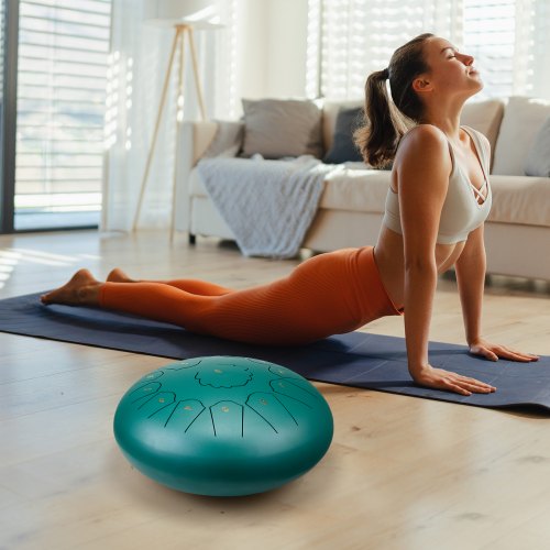 VEVOR Tamburo a Lingua d'Acciaio, Tamburo a Pioggia da 152,4 mm e 11 Note per Giardino Esterno, Tamburi Musicali in Re Maggiore con Libro di Musica e Bacchette, Strumento a Percussione, Verde