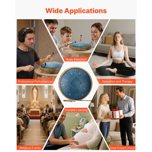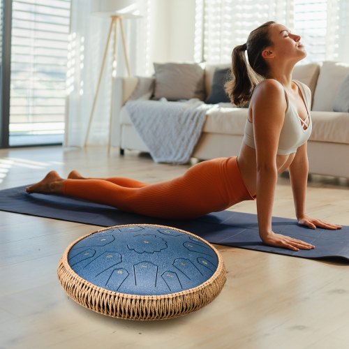 VEVOR Tamburo a Lingua d'Acciaio, Tamburo a Pioggia da 330 mm e 15 Note per Giardino Esterno, Tamburi Musicali in Do Maggiore con Libro di Musica e Bacchette, Strumento a Percussione, Blu Navy