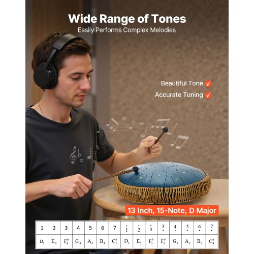 VEVOR Tamburo in Acciaio, 356 mm 15 Note, Tamburo Antipioggia per Giardino Esterno, Tonalità di Re Maggiore, con 2 Bacchette e Borsa per Trasporto, Strumento a Percussione per Musicale, Blu Marino