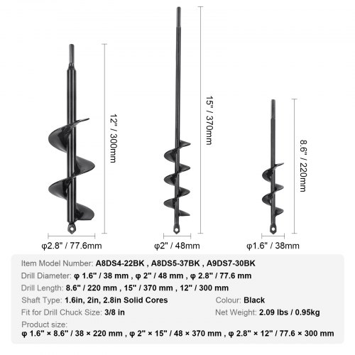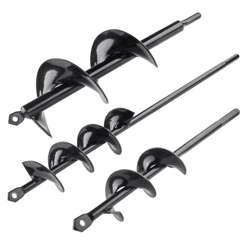 VEVOR Punte a coclea per piantare Set di 3, Punta a coclea da giardino, Punta a spirale per scavatrice di buche per pali, Piantagione di bulbi e Scavo di fori, per trapano con attacco esagonale da 3/8
