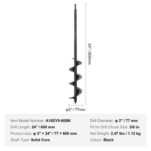 VEVOR Punta da trapano a coclea per piantare, Punta da trapano a coclea da giardino 3 x 24 pollici, Punta a spirale per piantare bulbi e scavare fori, Trapano con attacco esagonale da 3/8