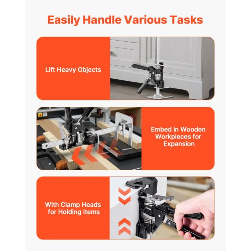 VEVOR Cric a Braccio per Risparmiare Lavoro, 2 PZ, Carico 150 kg Cric a Braccio in Metallo con Livella Magnetica, Sollevamento Fino a 250 mm Altezza Regolabile, per Porte, Finestre, Mobili, Nero