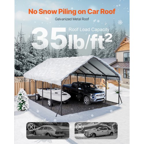 VEVOR Carport in Metallo per Impieghi Gravosi 3,6x6x3,15 m con Struttura e Tetto in Acciaio Zincato, Tenda da Garage Pareti Laterali Rimovibili, Ricovero per Auto Multiuso per Pick-up, Barca,Trattori