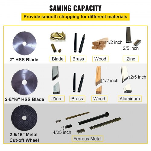 VEVOR Mini Troncatrice Affilacatena da Banco Portabile 90 W con 2 Lame Angolo Regolabile fino a 45°, Mini Affilacatena da Banco 7800 giri / min Troncatrice per Metallo Legno Plastica Alluminio Ferro