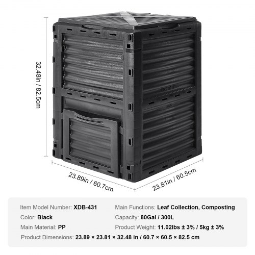 VEVOR Compostiere da Giardino 300 L ca. Contenitore per Compost da Esterni, Bidone per Compost Materiale Senza BPA Compostiere per la Raccolta delle Foglie Compostaggio Creazione di Terreno Fertile