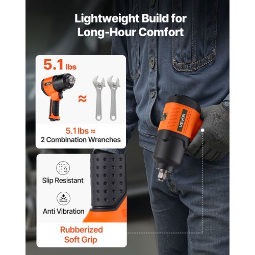 VEVOR Chiave a percussione pneumatica, pollice Coppia inversa 2730 ft-lbs Leggera impugnatura a D per riparazioni pesanti, attività su camion, appassionati di auto, meccanico