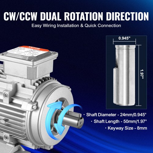 VEVOR Motore Elettrico 1,5KW 1400 Giri/min, CA 220~240V 9,85A, 90L, Telaio B3, Motore del Compressore d'Aria Monofase, Albero Chiavetta 24mm, Rotazione CW/CCW Macchine Agricole Attrezzature Generali
