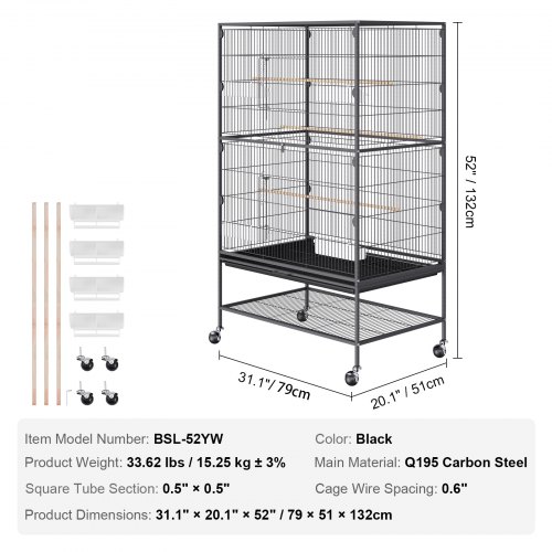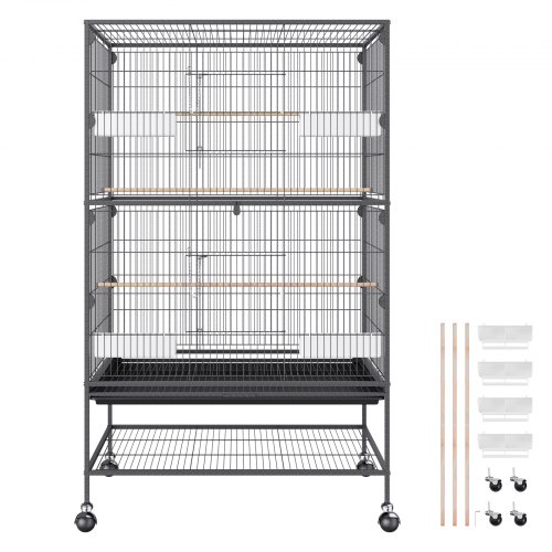 VEVOR Gabbia Voliera per Uccelli Grande con Piedistallo Altezza 132cm, Gabbia per Uccelli in Ferro Battuto per Pappagalli Calopsite con Supporto Rotolante Vassoio, Voliera Ampia per Uccelli Pappagalli