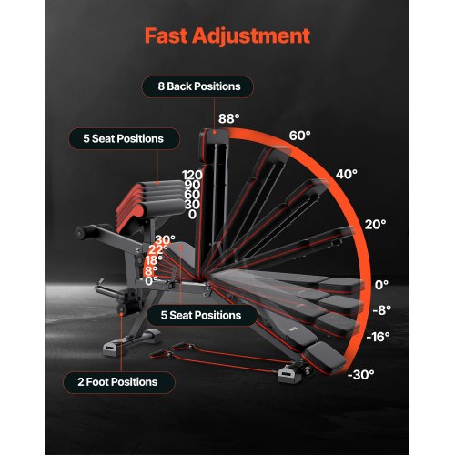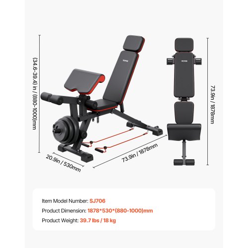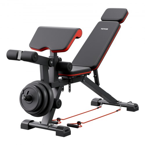VEVOR Panca pesi Stabile e Resistente per Allenamento Completo del Corpo, Panca Regolabile per Esercizi, per Allenamento Forza con Estensione Gambe, Cuscinetto Antiscivolo Predicatore 363 kg