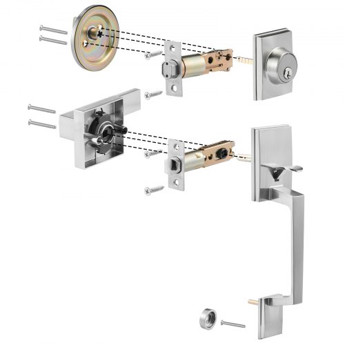 VEVOR Set Maniglia per Porta d'Ingresso, Set Maniglia Quadrata in Nichel Satinato Maniglia per Porta a Leva, Maniglia per Porta d'ingresso per Ingresso a Destra e Sinistra e Porta d'Ingresso