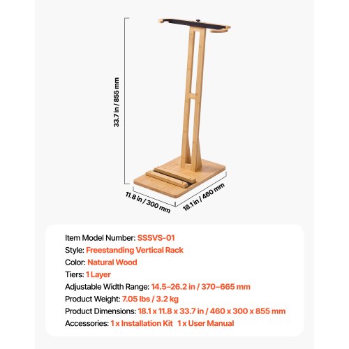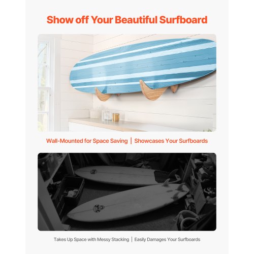 VEVOR Supporto Verticale per Tavole da Surf, Supporto per Tavole da Surf in Legno Regolabile 370-665 mm per Riporre ed Esporre, Organizzatore Indipendente con Imbottitura in Sughero per Wakeboard