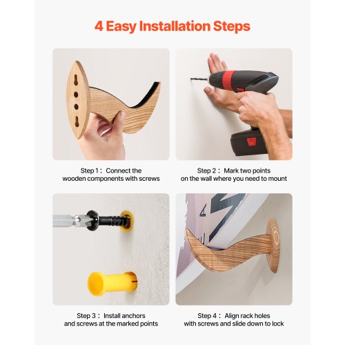 VEVOR Supporto da Parete per Tavola da Surf, Supporto Orizzontale in Legno per Riporre ed Esporre, Organizzatore Regolabile 1 Strato per Kiteboard, Shortboard, Sci, Snowboard e Wakeboard