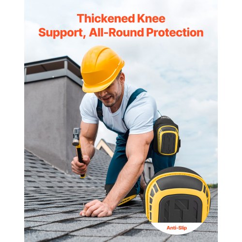 VEVOR Ginocchiere per Lavoro 275 x 140 x 115 mm Ginocchiere da Costruzione Extra Spesse con Imbottitura in Schiuma, Ideali per Tetti, Giardinaggio e Pavimento, per Uomini e Donne, Nere e Arancione