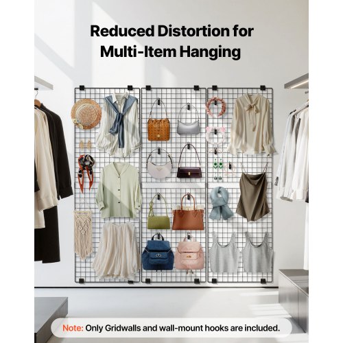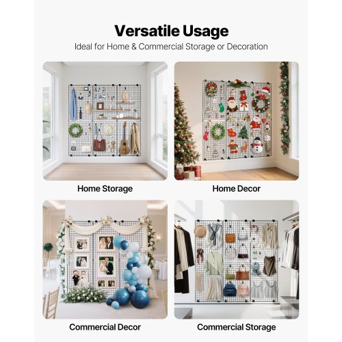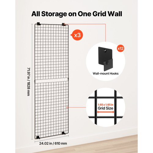 VEVOR Parete da Pannello a Griglia 610 x 11 x 1828 mm 3 pezzi Pannello a Griglia Esposizione Artistica da Parete in Acciaio al Carbonio, Bacheca per Foto da Parete per Decorazioni, Nero