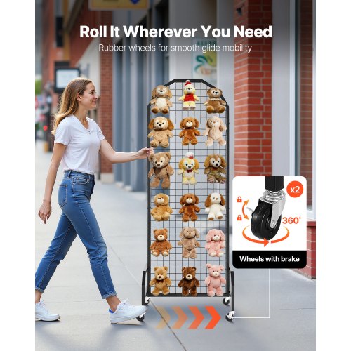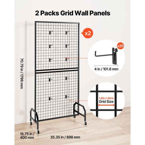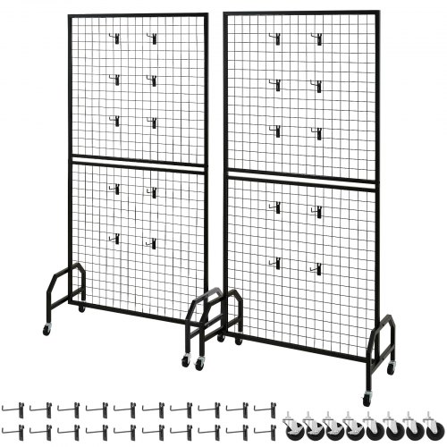 VEVOR Parete da Pannello a Griglia 898 x 400 x 1798 mm 2 pezzi Espositore con 20 Ganci, in Acciaio al Carbonio Pannelli A Griglia per Esposizioni Artistiche Conservazione e Decorazioni