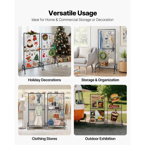 VEVOR Parete con Pannello a Griglia Metallica per Esposizioni Mostre 840 x 578 x 16 mm da 2 Pezzi Pannello Portaoggetti da Pavimento, Pannello a Griglia Porta Quadri Foto Utensili Capacità Max. 27 kg
