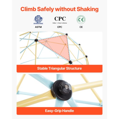VEVOR Cupola da Arrampicata Geometrica per Bambini da 3 a 10 Anni, 305 cm, Supporta 340 kg, con Maniglia da Arrampicata, Montaggio Facile, Parco Giochi da Esterno Giardino, Cortile
