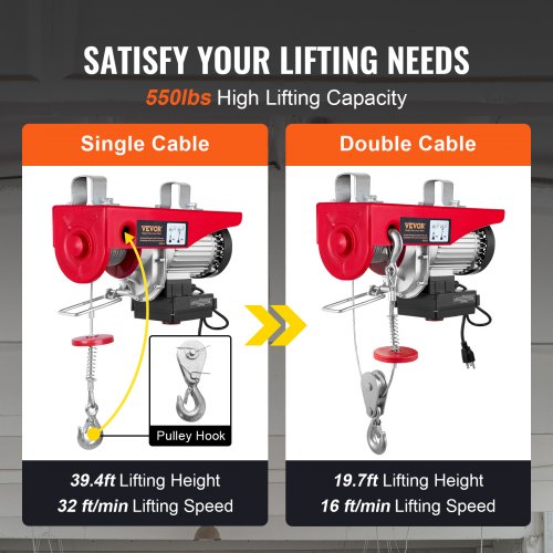 VEVOR Verricello Elettrico, Capacità 500 kg, Verricello Elettrico Portatile 1800 W, Altezza di Sollevamento 30 m, 11 m/min con Telecomando a Filo e Wireless, per Garage Fabbrica Sollevamento Traino