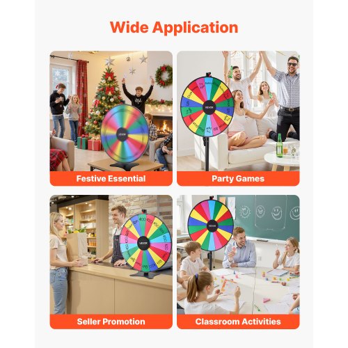 VEVOR Ruota del premio da tavolo a colori 24pollici con cavalletto pieghevole per cavalletto Ruota a 14 clicker per Slot modificabile Fortune Design Carnival Spin Game
