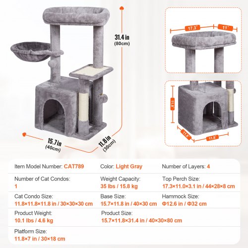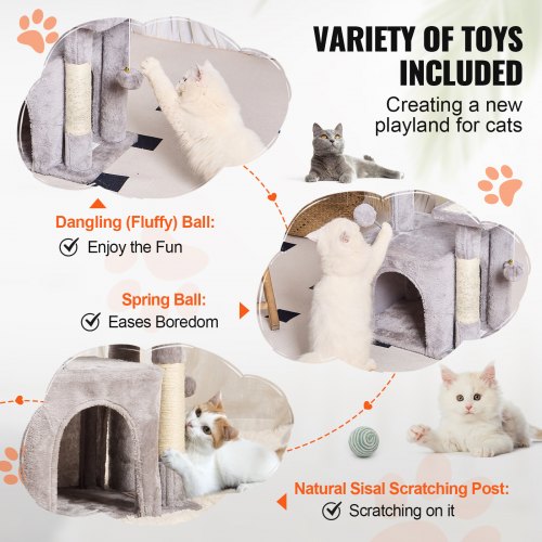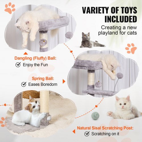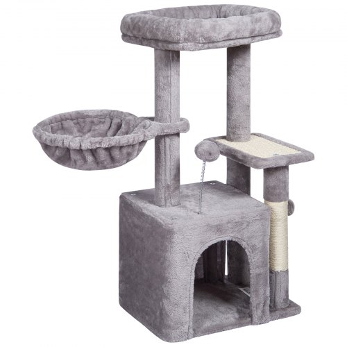 VEVOR Albero per Gatti da Interno 80 cm Torre per Gatti con Cuccia per Gatti, Amaca, Trespolo Superiore, Piattaforma per Saltare, con Palla Sospesa, Centro Attività per Mobili per Gatti, Grigio Chiaro