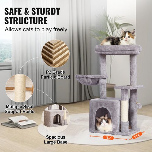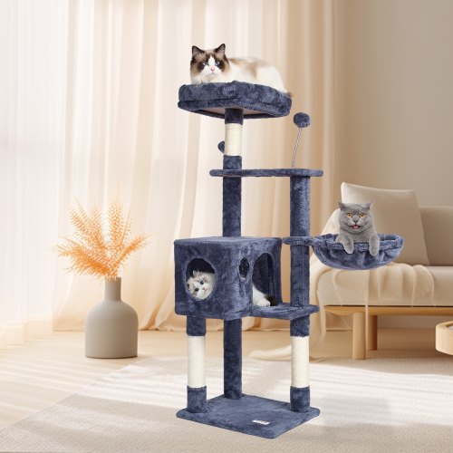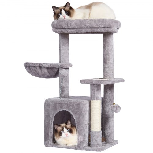 VEVOR Tiragraffi per Gatti da Interno 115 cm Torre per Gatti con Cuccia per Gatti, Amaca, Trespolo Superiore, Piattaforme per Salti, Palla Appesa, Centro Attività per Mobili per Gatti, Grigio Scuro