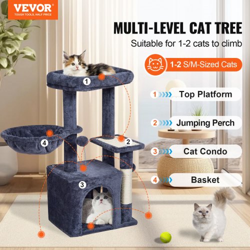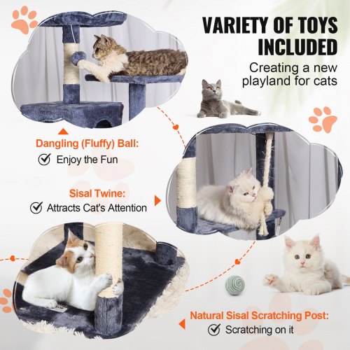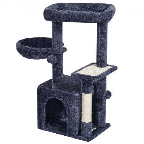 VEVOR Albero per Gatti da Interno 80 cm Torre per Gatti con Cuccia per Gatti, Amaca, Trespolo Superiore, Piattaforma per Saltare, con Palla Sospesa, Centro Attività per Mobili per Gatti, Grigio Scuro