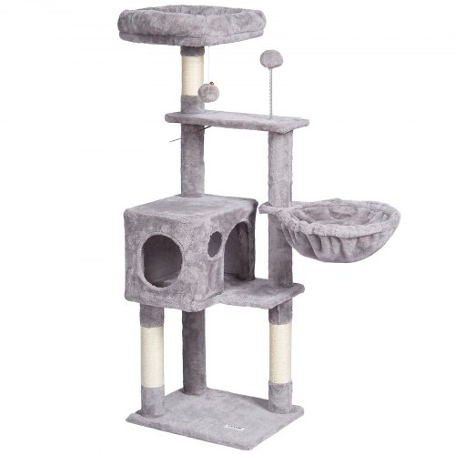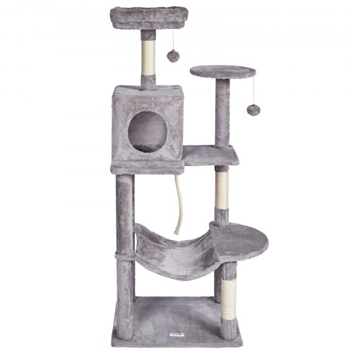 VEVOR Tiragraffi per Gatti Interno 143 cm Torre per Gatti con Cuccia per Gatti, Amaca, Trespolo Superiore, Piattaforme per Salti, con Palla Appesa, Centro Attività per Mobili per Gatti, Grigio Chiaro