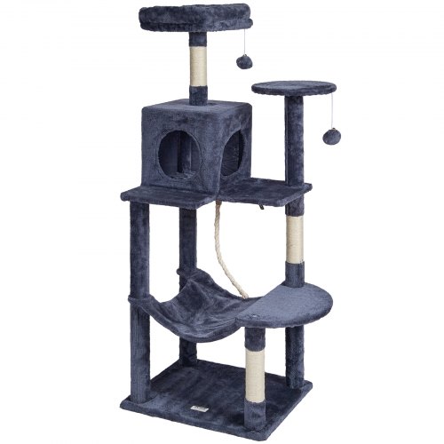 VEVOR Tiragraffi per Gatti da Interno 143 cm Torre per Gatti, Cuccia per Gatti, Amaca, Trespolo Superiore, Piattaforme per Salti, con Palla Appesa, Centro Attività per Mobili per Gatti, Grigio Scuro